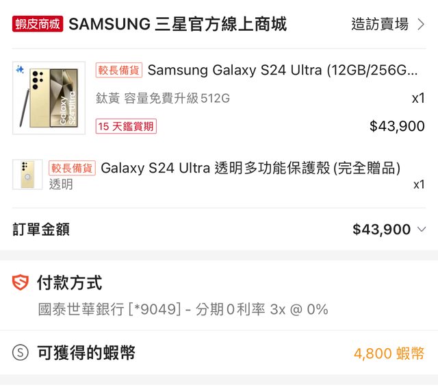推 leehomalan : 今天周一,line導購買s24 ultra有再另加碼10%嗎? 01/22 01:11
