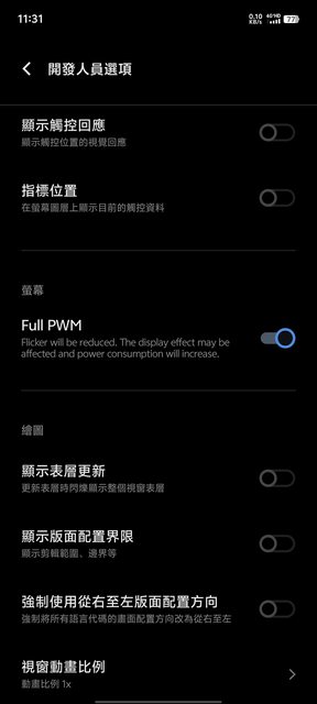 陸版X100P回家看開發者選項裡真的有全局高頻PWM調光惹,之前可能看漏了…