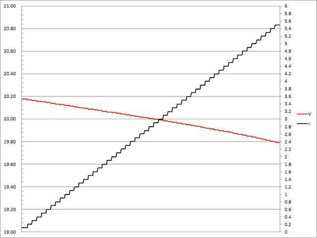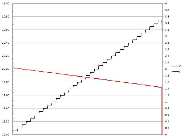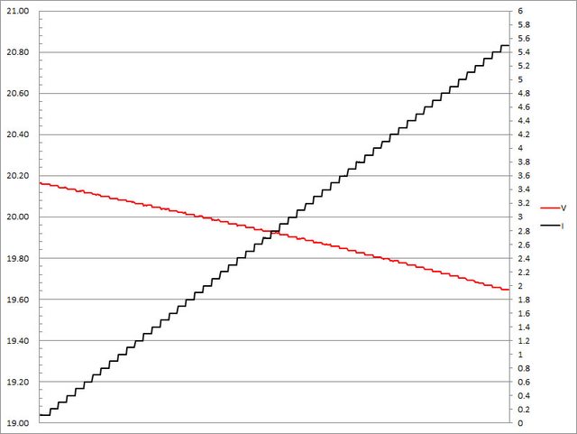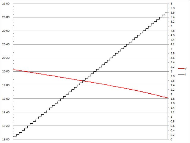 ▼20V輸出1A/2A/3A/4A/5A放電的電壓電流圖表如下所示