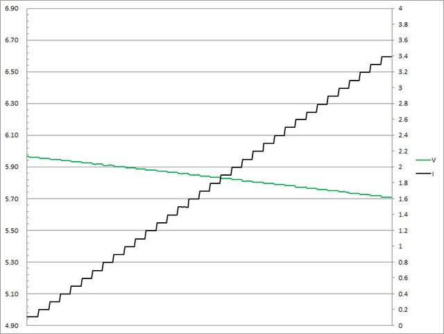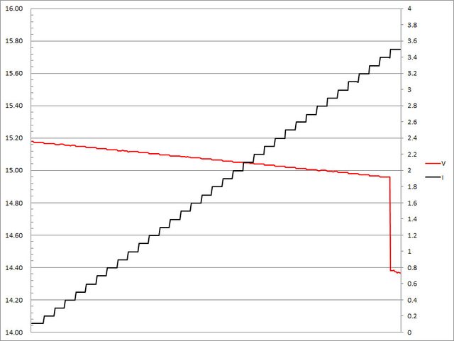 ▼5V/9V/12V/15V輸出1A/2A/3A放電的電壓電流圖表如下所示