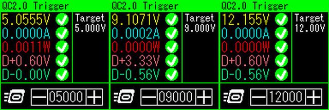 ▼USB-A的5V/9V/12V空載輸出電壓