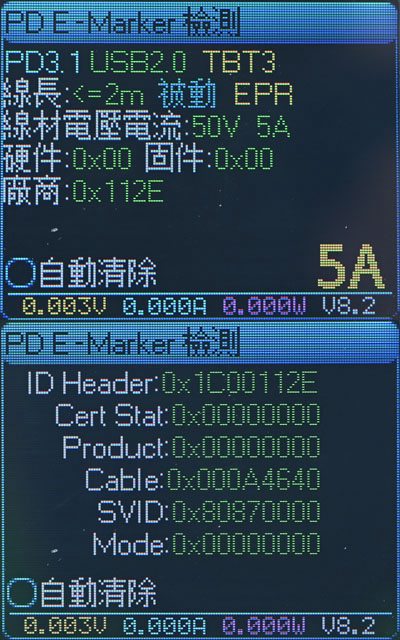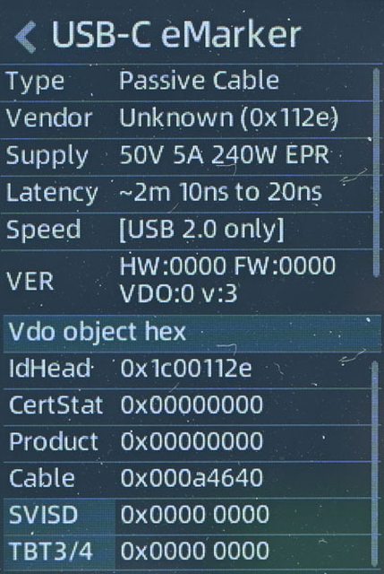 ▼充電線E-Marker資訊,電力傳輸支援50V/5A 240W EPR,資料傳輸支援USB 2.0