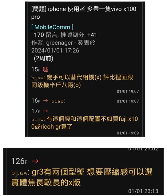 → RieX: 都略過,只截拍輸的,再跑上來說vivo拍照差