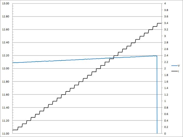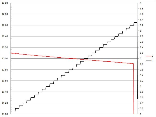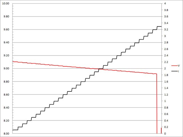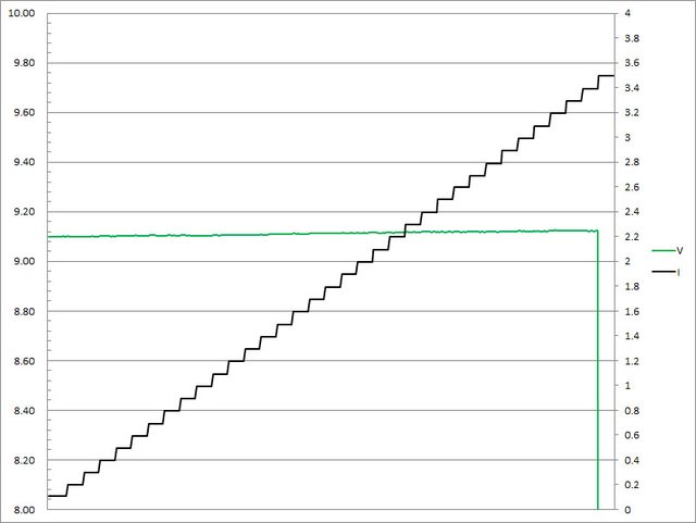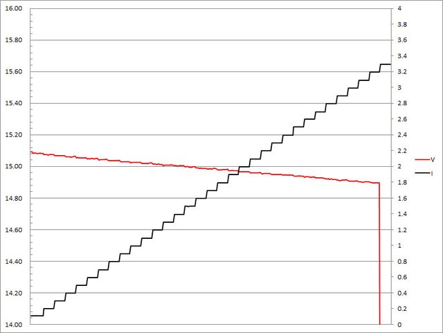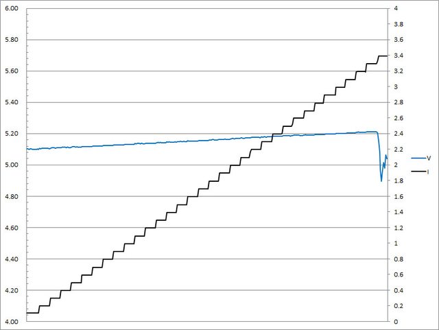 超過3.2A大幅壓降,超過3.3A截止