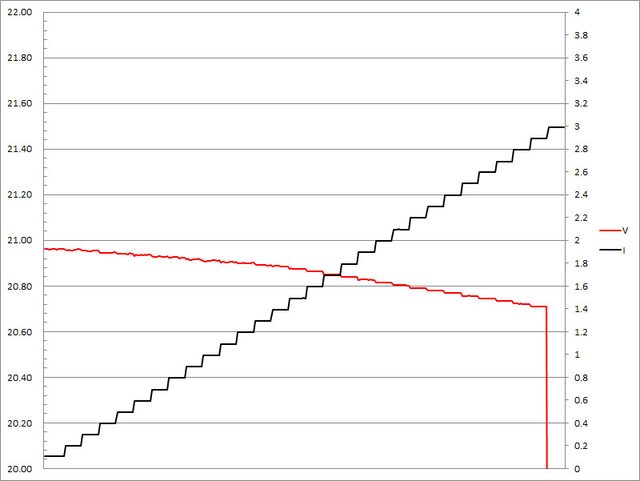 超過2.9A大幅壓降,超過3A截止