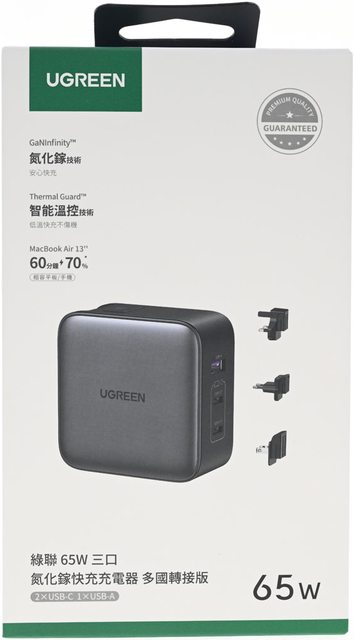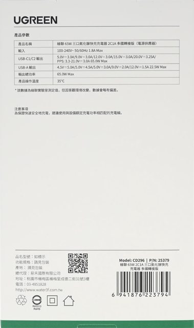 標題[心得] UGREEN綠聯65W國際插頭三埠GaN快充 CD296
