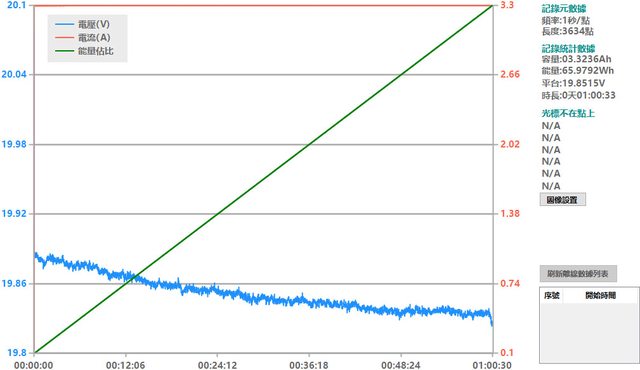 ▼USB-C1搭配5A線材的PPS檔3.3V輸出負載測試,隨著電流增加,輸出電壓下降,輸出電