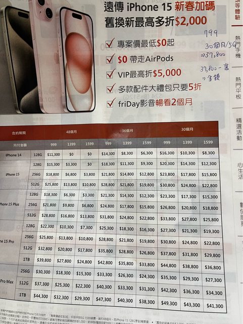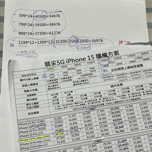 : ❷40300是單單iPhone 15 Pro Max的價格嗎?