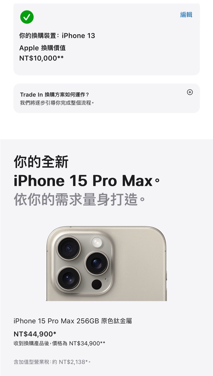 : 手機想更換成iPhone 15 Pro Max(256GB)