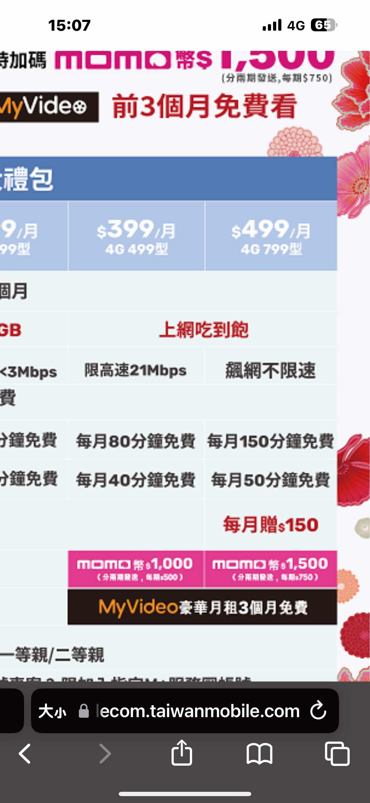 推 ludashi : 我看到的是企專4G 499吃到飽24個月,贈momo幣1500 02/18 14:38