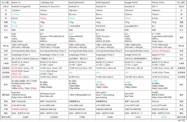 推 hillwind : 胡少有一篇小米13 14 跟 s24的比較,看起來除了錄 04/14 10:40