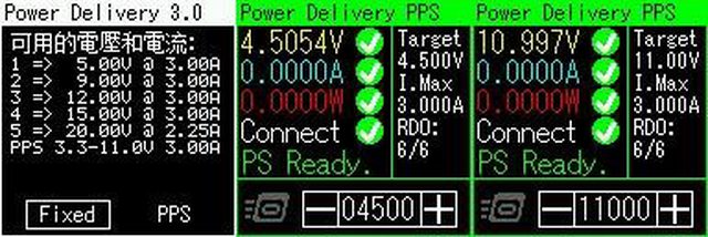 ▼USB-C單獨使用並搭配3A線材,固定檔不變,PPS檔表列提供3.3V-11V/3A,不過最低輸