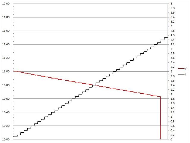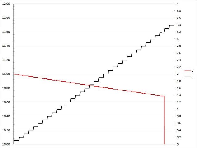 ,PPS檔雖然表列3.3V-11V/4.05A,不過最低輸出電壓只能降到4.4V左右