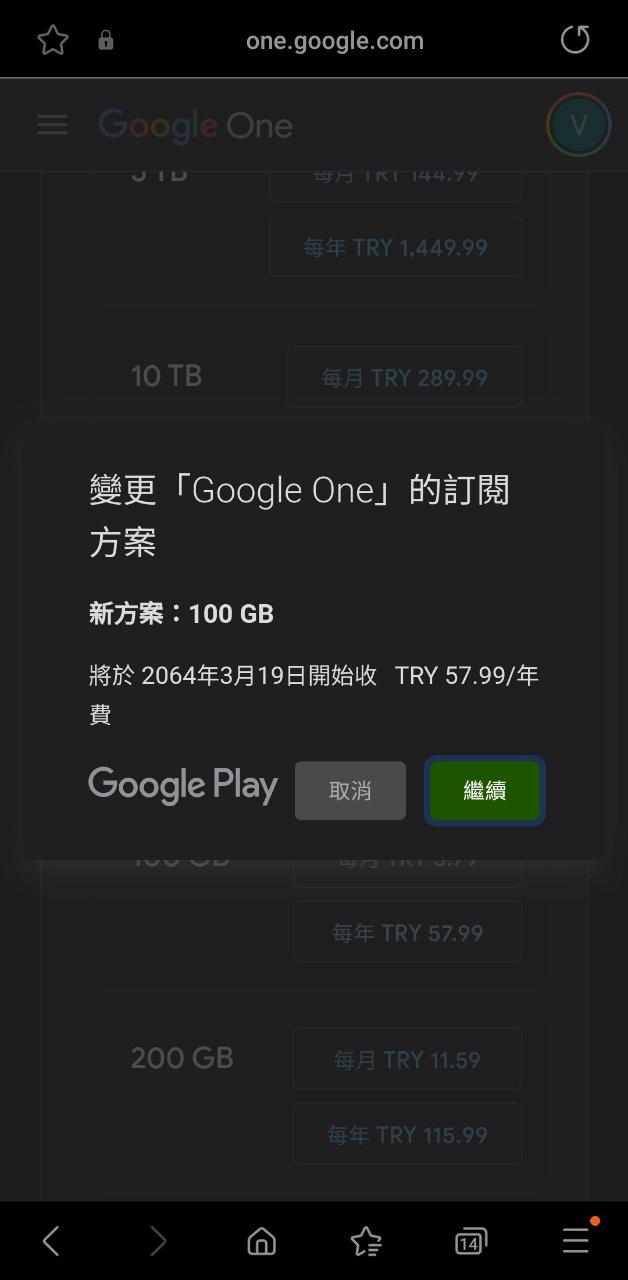 推 gvmlve : ytp可以刷 ,,但Google one卻不行 04/29 17:12