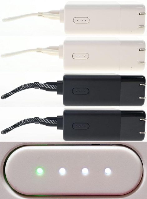 個面積較小的側面有橢圓形按鍵,內有4個白光電量指示燈,當開啟快充輸出時,最左邊