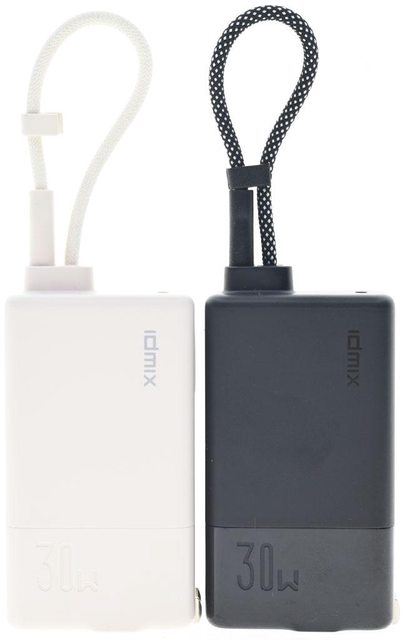 ▼米白版(左)與黑色版(右)IDMIX MR CHARGER CH10 Chill豆腐 30W雙模行動電源直出線