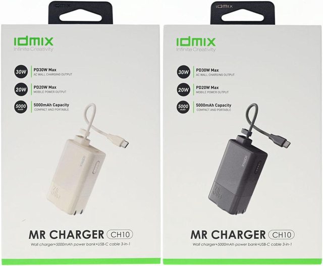 ▼米白版(上)與黑色版(下)IDMIX MR CHARGER CH10 Chill豆腐 30W雙模行動電源直出線