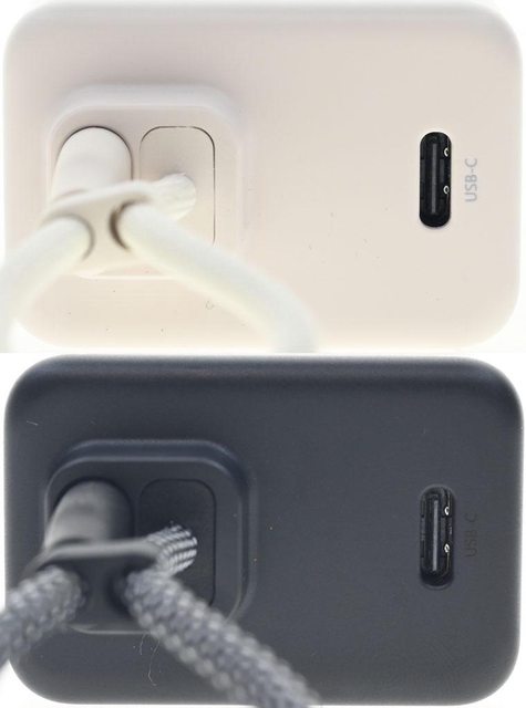 ▼米白版(左)與黑色版(右)IDMIX MR CHARGER CH10 Chill豆腐 30W雙模行動電源頂部凸