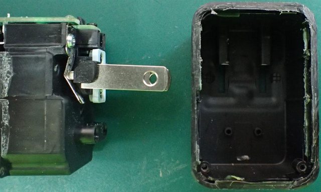 ▼切割上下外殼相接處後,自上半部外殼抽出內部框架與下半部外殼