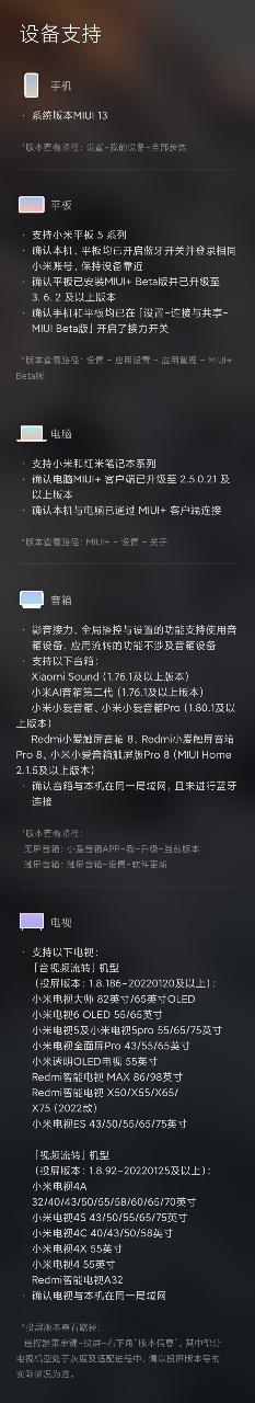 目前可以使用裝置互連or小米妙享的手機型號最低型號為?小米12Tpro(Redmi K50)可以嗎