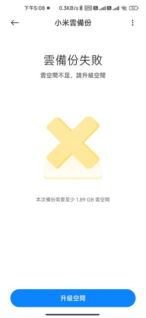 今日從小米10ultra升級到14u,要準備10u備份,再從14u還原,發現小米雲滿了,而且按