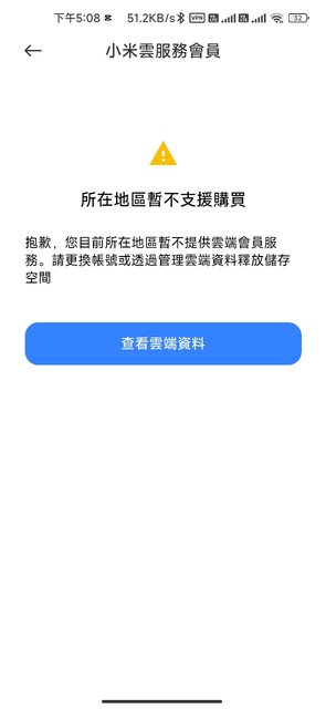 下升級空間也說地區不支援(後來查詢小米付費會員與小米相片服務在2022年同步下架)