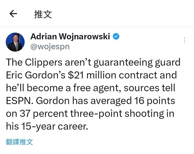 → tyrone0923 : Woj:Gordon's waiving saves the Clippers $110M 06/29 13:04