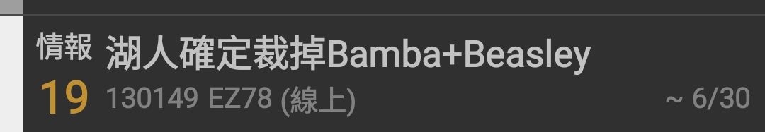 噓 bemjamen123 : 去湖人為啥會被糟蹋 笑死 講的好像去太陽多好一樣 06/30 11:30