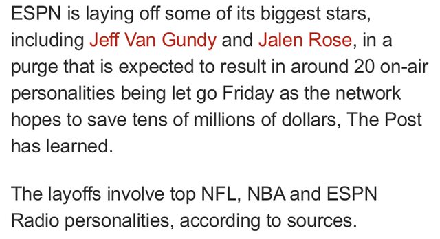 推 swallow753 : Jalen Rose 也被裁了 ESPN總共裁了約20名 06/30 22:48