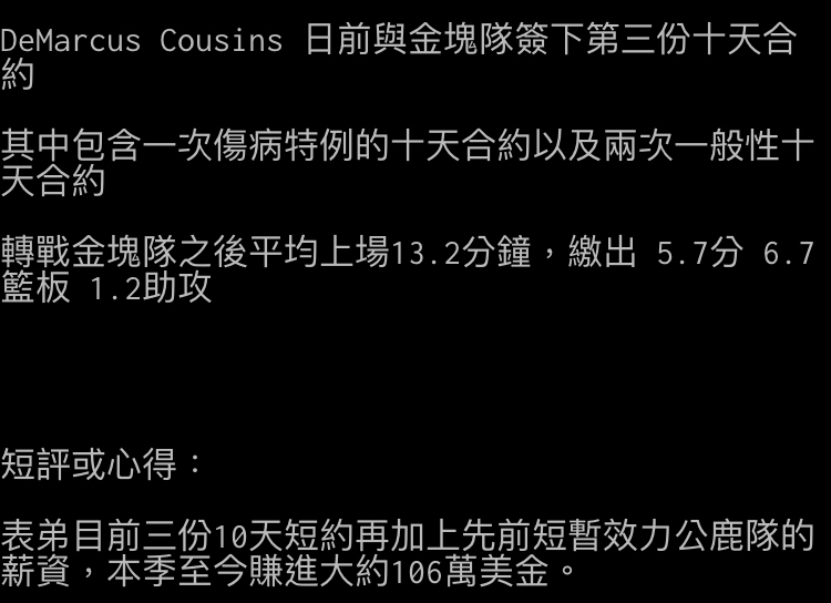 s678902003 : 合約簽一個月,但實際只打10天內的4場主場吧...? 12/20 10:08