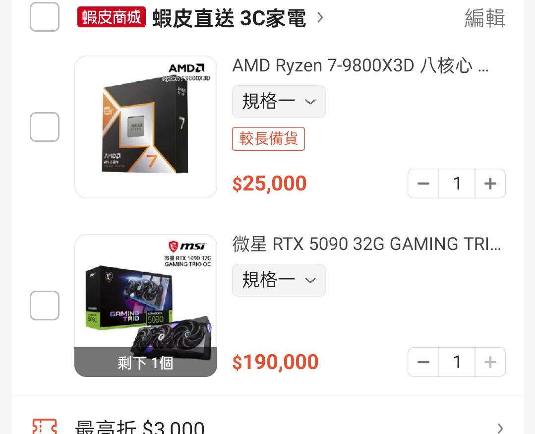 → ianlee0800: 98x3d高價屋那邊就一樣都不進貨了,不 1.175.184.54 03/10 15:29