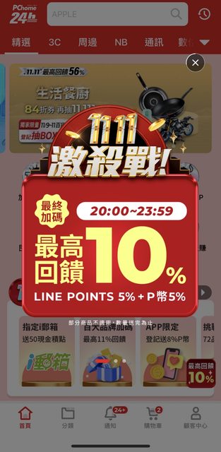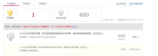 不過因為有搶到雙11的5%P幣回饋+line購物加碼5%(這個有上限200)