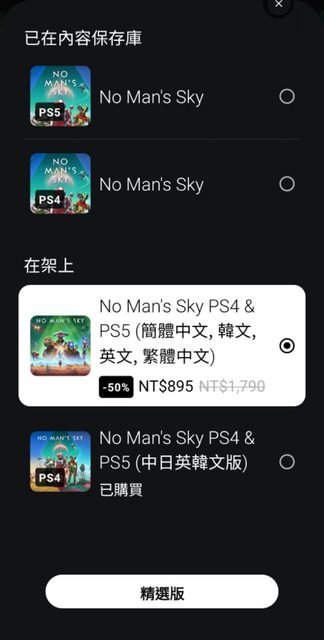 剛剛從Line 推送的遊戲購物節連結點進去,想看看有哪些遊戲特價,結果看到No man's
