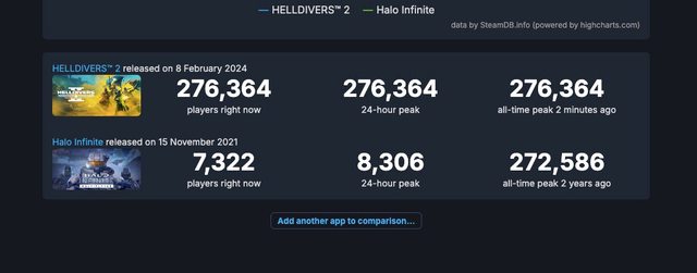 3. Steam 同時線上玩家數超過Halo infinite 的最高紀錄(仍持續上升中)。 https://i.imgur.com/8lCcCot.jpg
