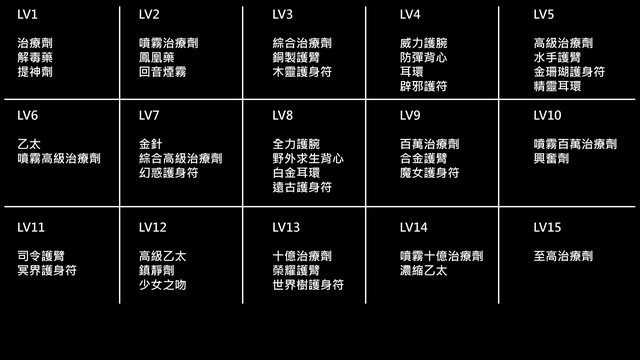 我是把全部能夠開發的道具都寫出來以後再一一分類