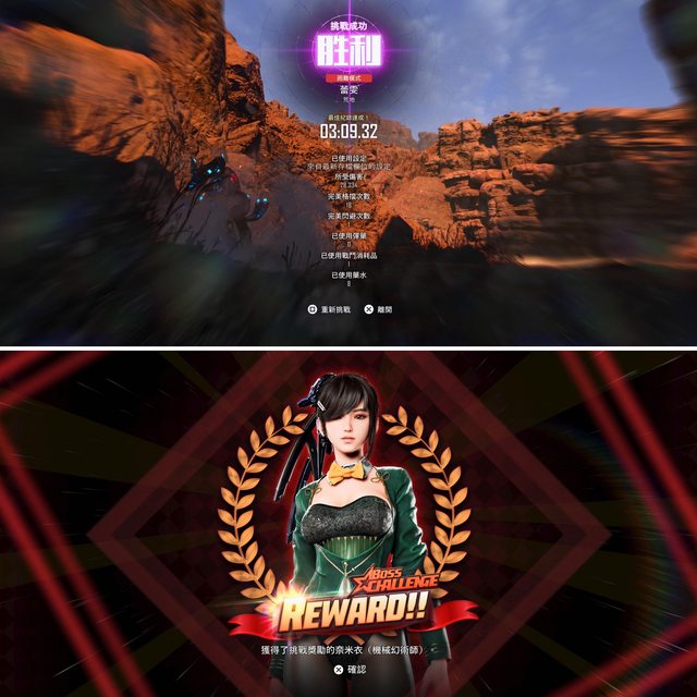 目前衣服全拿完,裝備升滿、文件、記憶體、飲料全撿完,Boss挑戰困難蕾雯也一次次進去