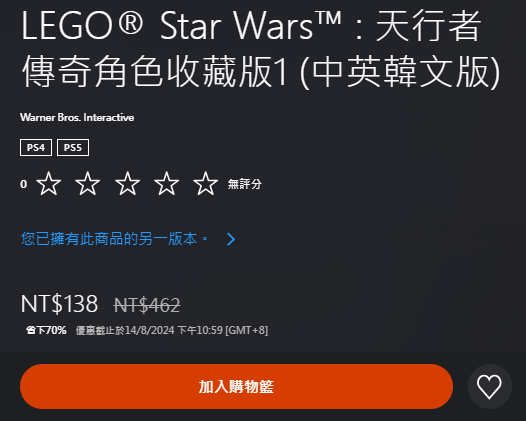 → sniperex168: 在特價。角色收藏版1&2合一起的反而沒特價 08/07 13:26
