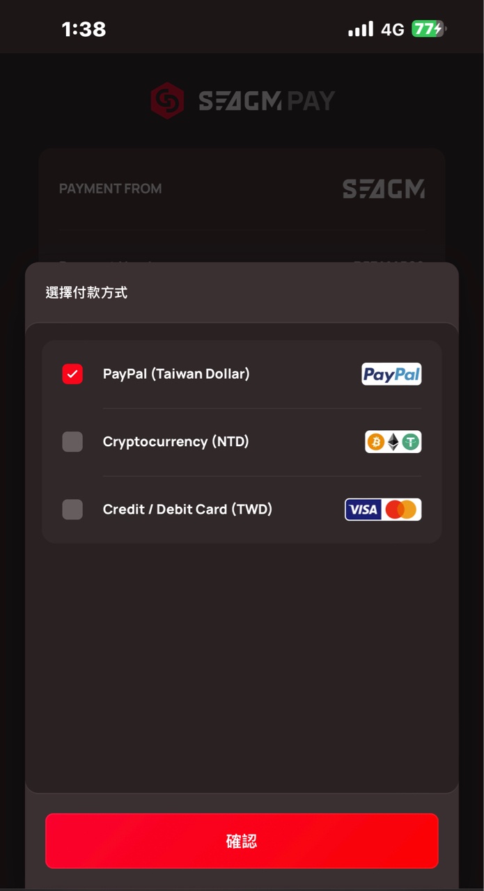推 giraffe49: SEAGM剛剛買了兩張香港150點卡,付款的地方預設是PayPa 08/20 13:23