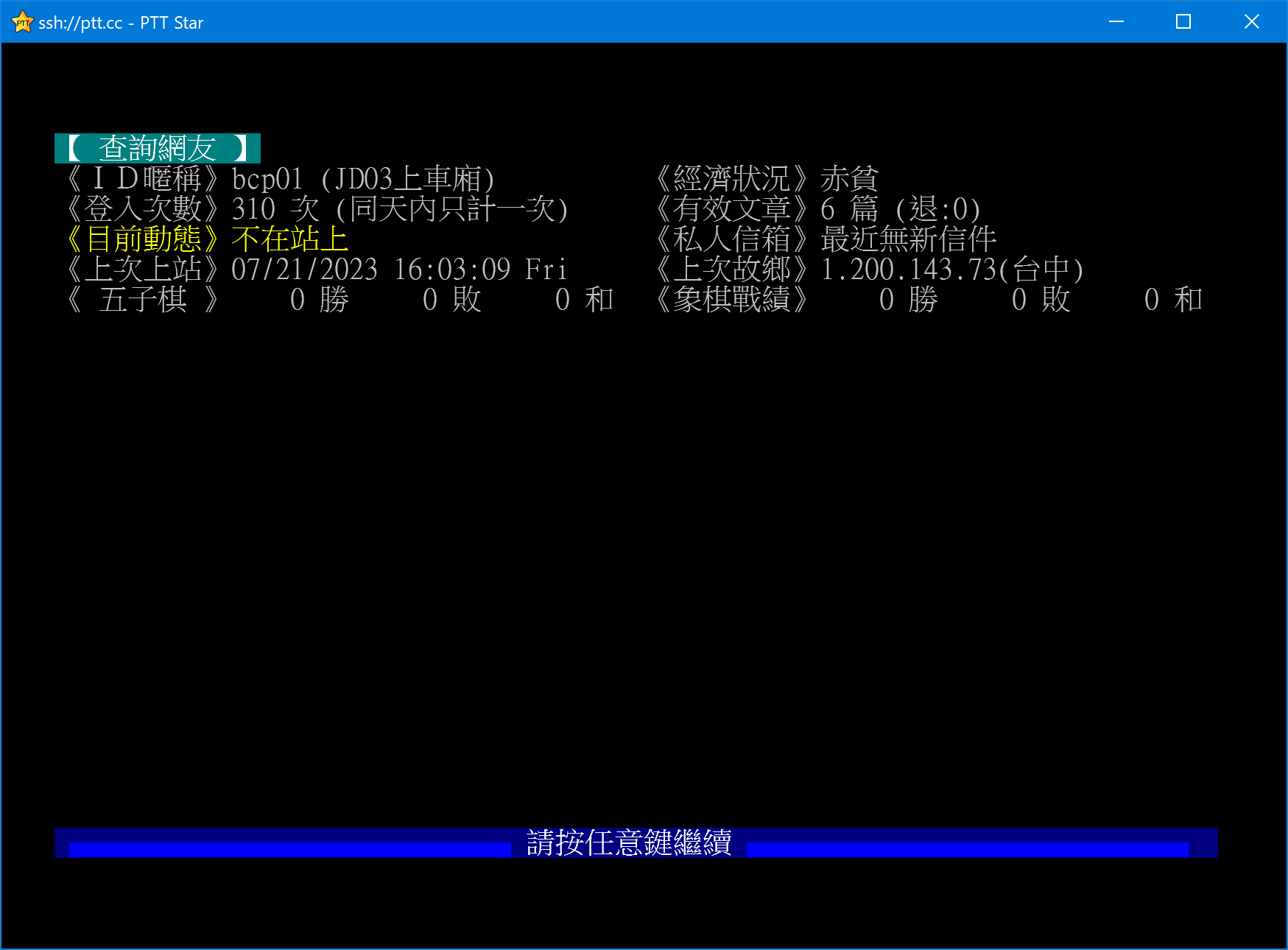 《ID暱稱》bcp01 (JD03上車廂) 《經濟狀況》赤貧