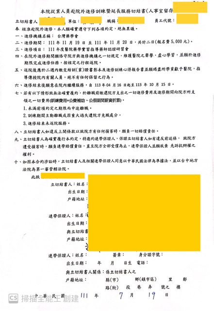→ kevinmeng2: 第三份可能可以歸類為教育訓練簽訂的切結書09/05 19:13