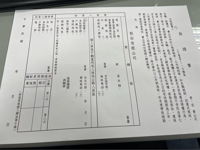 → abm311: 敝司為上市公司也是要求籤兩個連帶保證人 09/13 13:46
