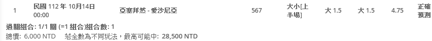 推 chung7629: 不知道我全場1.5小有沒有搞頭 36.231.19.230 10/14 00:24