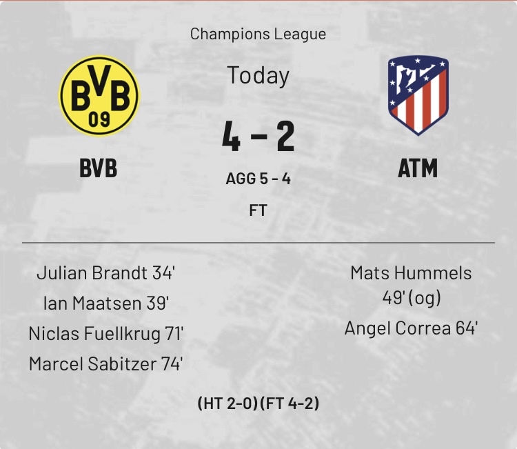 馬德里競技1:4多特蒙德 30.00