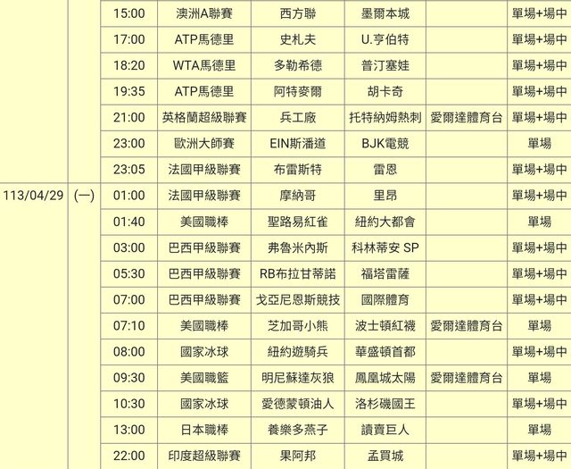 標題[官方] 113-04-28 單場場中