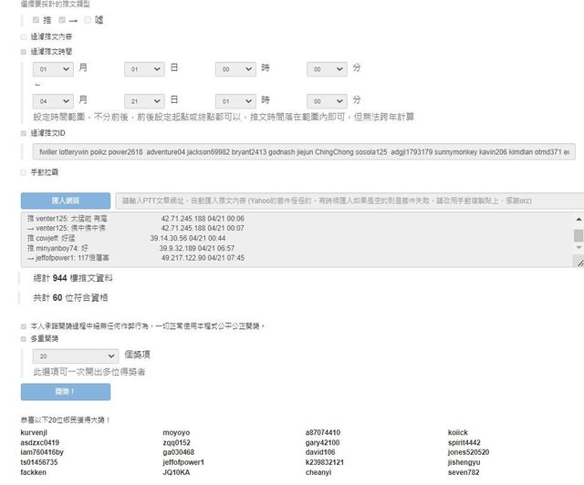 抽二十位 (此篇為律師四月抽獎第十四篇)