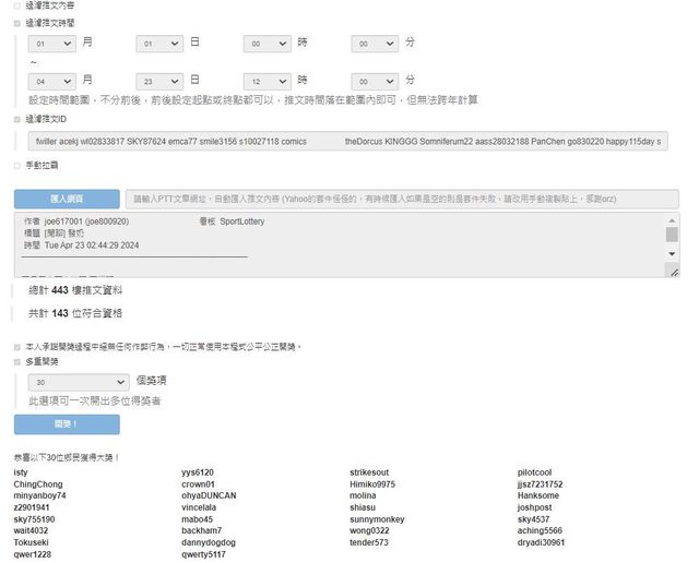 抽30位 (過濾四月我抽過其他大大飲料者)