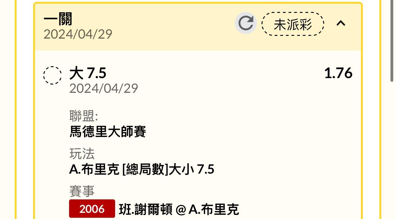 → iam760416by: 第二盤不理科+1.5gogo 27.52.8.56 04/29 17:44