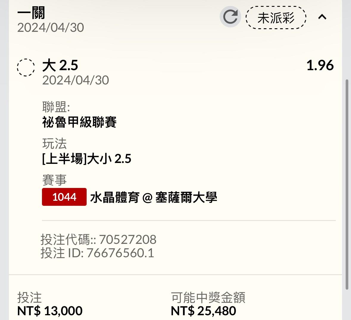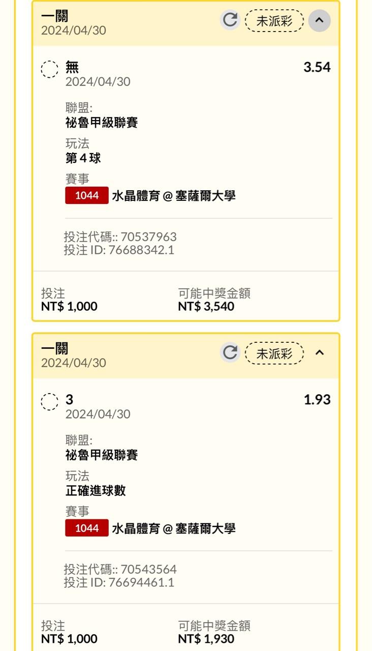 -- ※ 發信站: 批踢踢實業坊(ptt-site.org.tw), 來自: 39.9.158.30 (臺灣) ※ 文章網址: https://ptt-site.org.tw/SportLottery/M.1714438193.A.E86