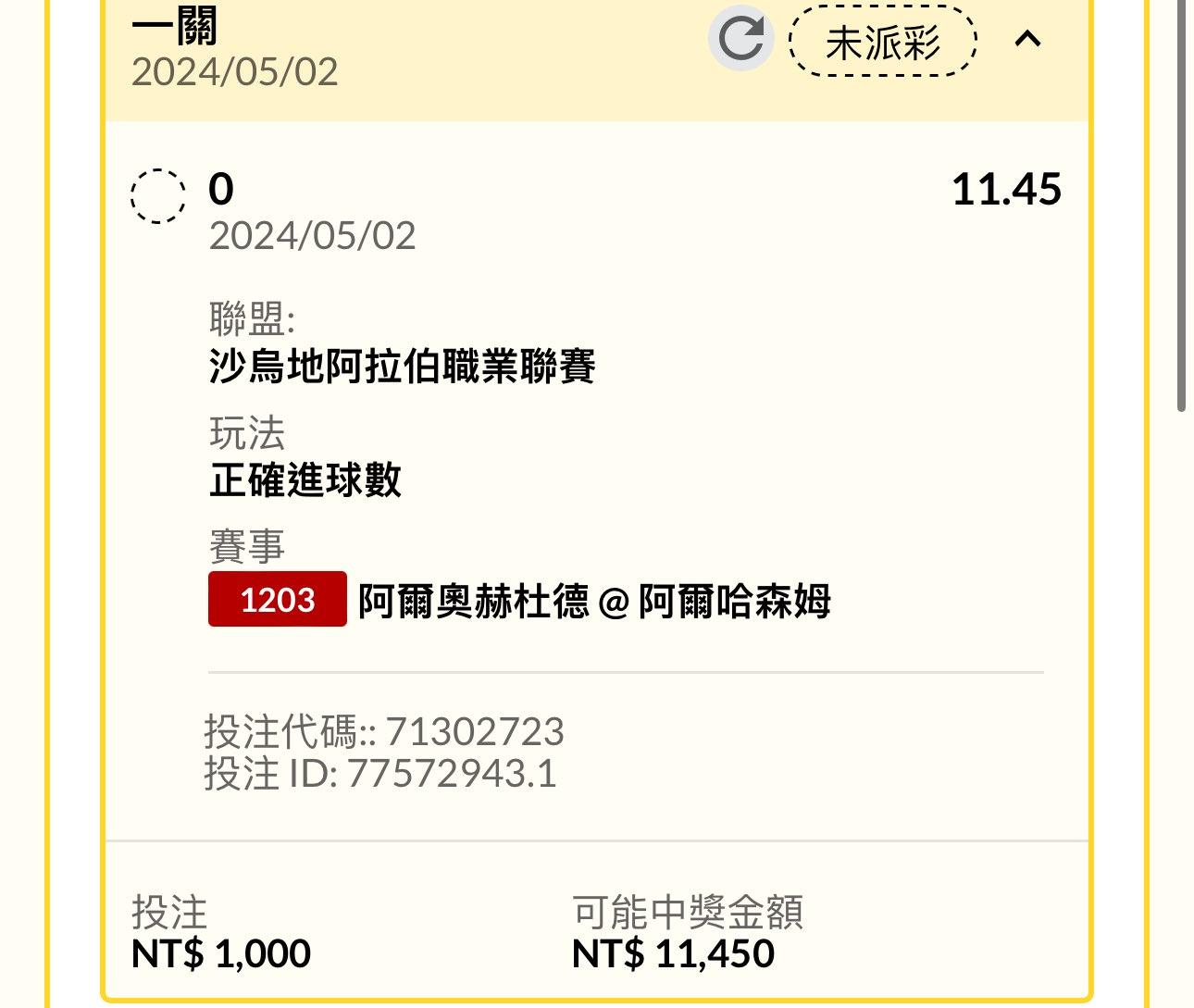 → tieysn: 等賠率等那個1.173.25.121 05/02 22:46