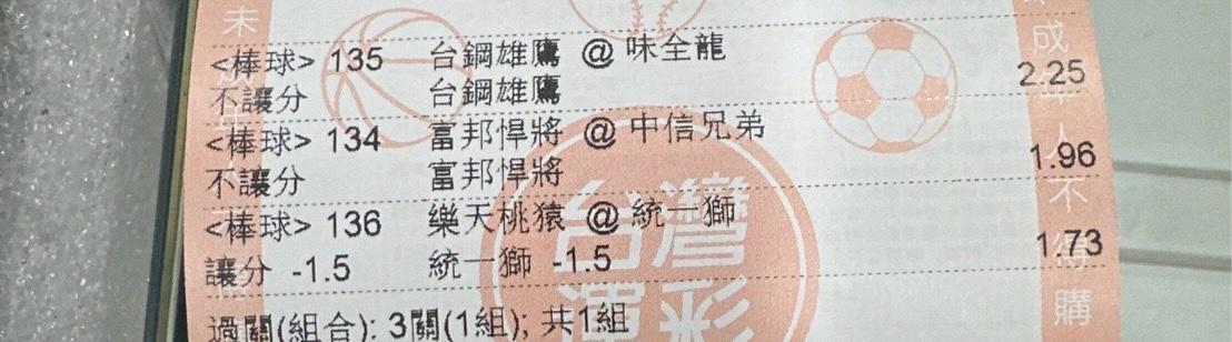 噓 w2658741: 富邦 台鋼pk 喵喵-1.5 3*1 7倍收他媽 111.82.250.216 05/03 21:44